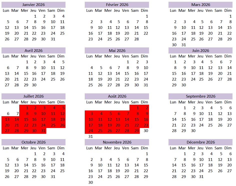 Disponibilités Avant de réserver, regardez les disponibilités Dernière mise à jour : 6 février 2026 CALENDRIER 2026